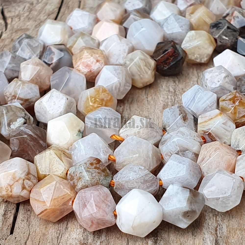 - Achát bamboo korálky 8mm bicone výbrus šnúra