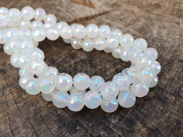 Achát korálky 8mm brúsené biele s dúhovým pokovom šnúra
