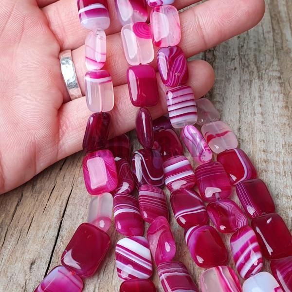Achát krajkový korálky 10x14mm obdĺžniky fuchsiové šnúra