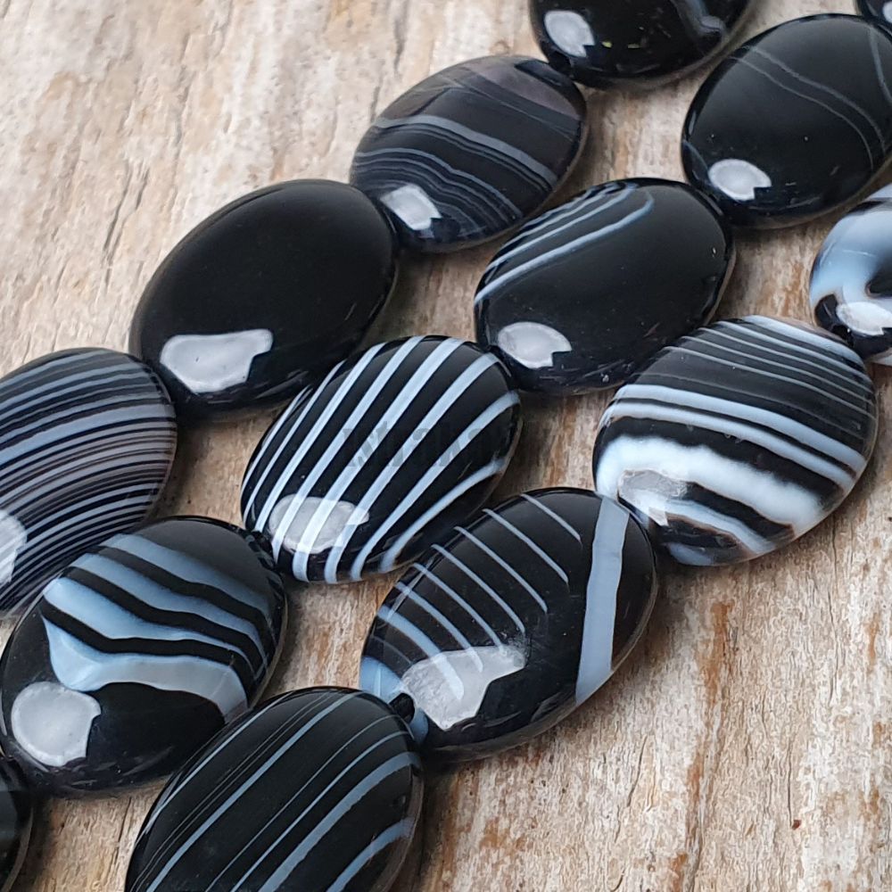 - Achát krajkový korálky 10x14mm ovály čierne šnúra