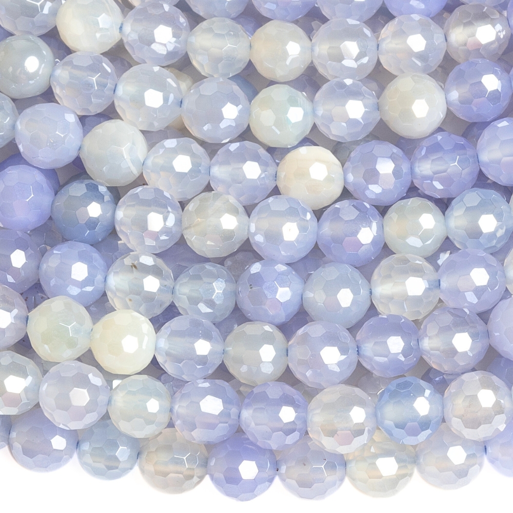 Achát krajkový korálky 6mm brúsené belasé s pokovom šnúra