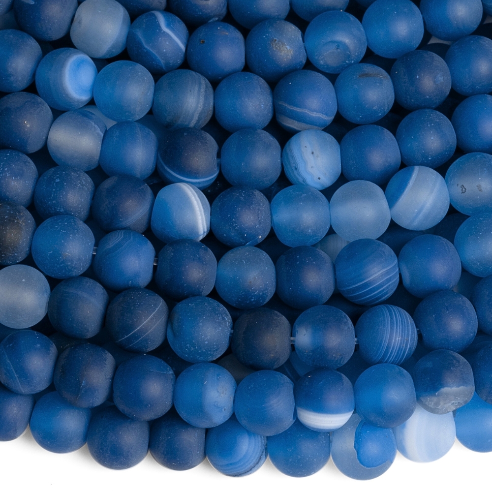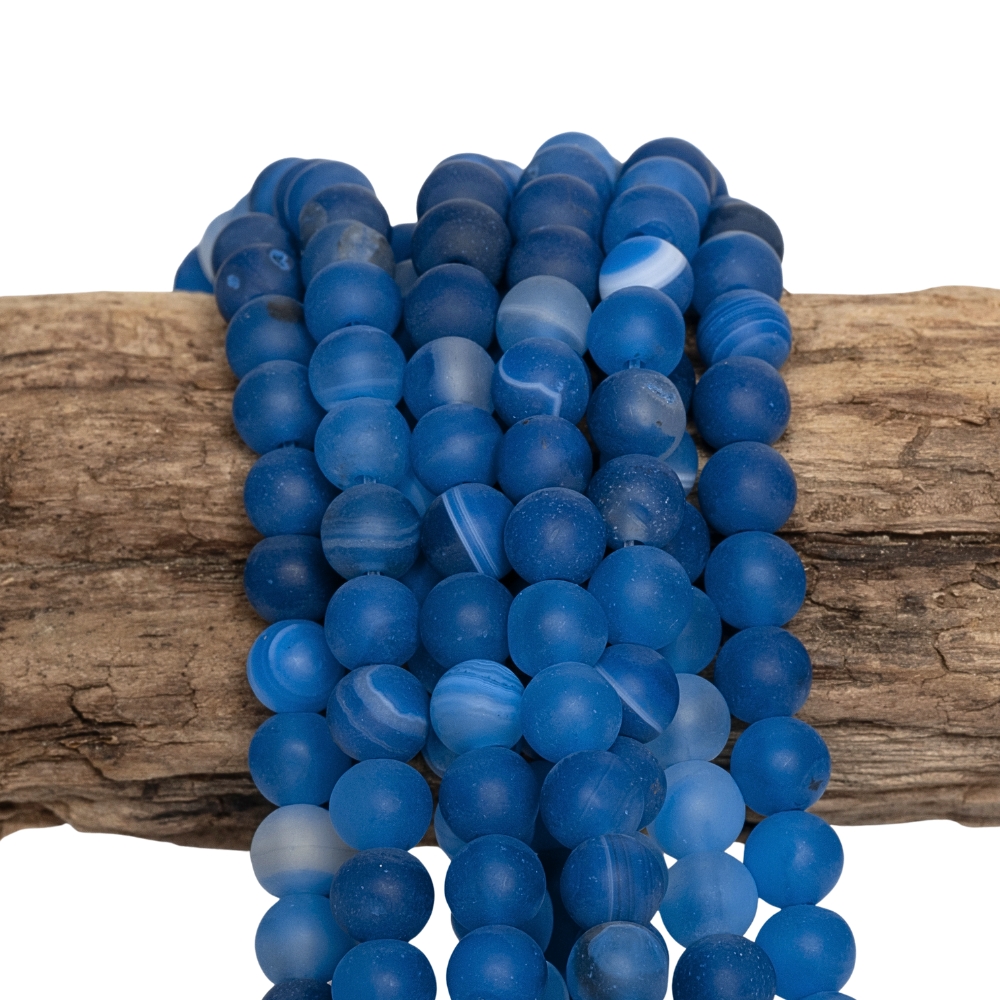 Achát krajkový korálky 6mm modré matné šnúra