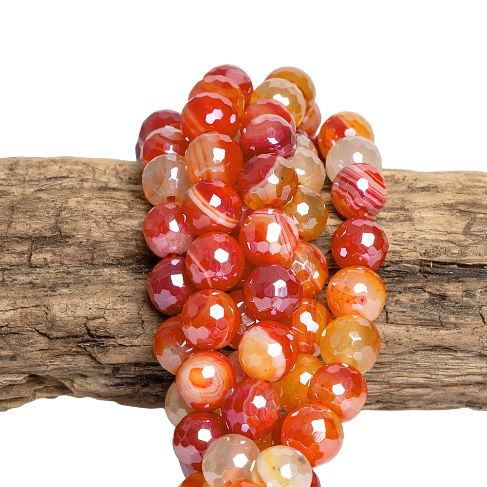 Achát krajkový korálky 8mm brúsené červené s pokovom šnúra