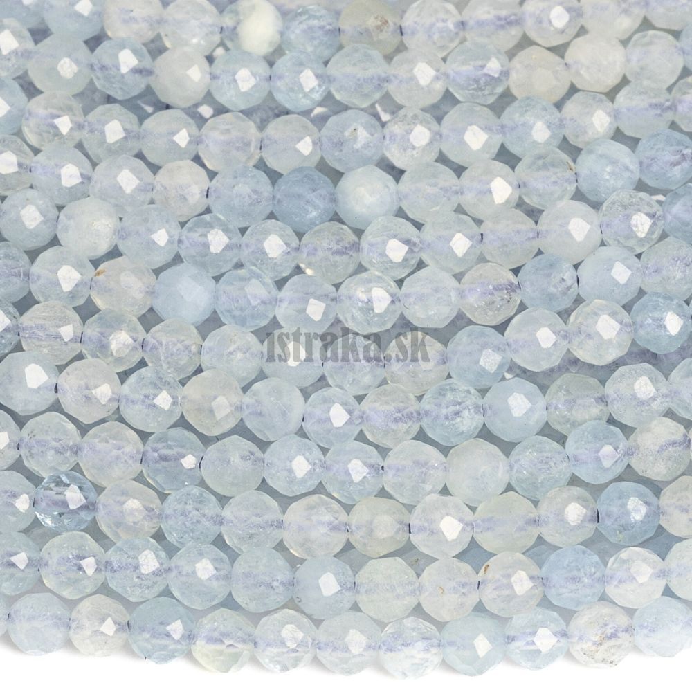 Akvamarín korálky 3mm brúsené šnúra
