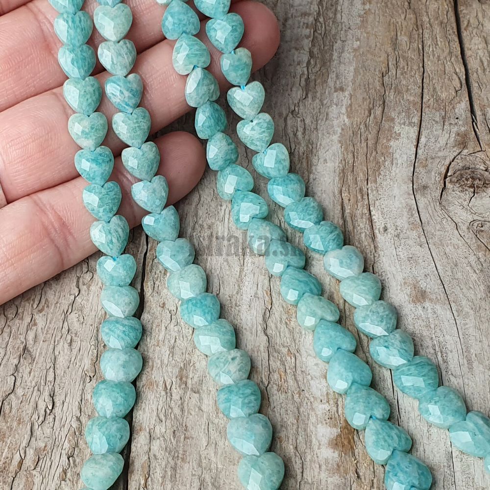 Amazonit korálky 8mm srdiečka brúsené polšnúra