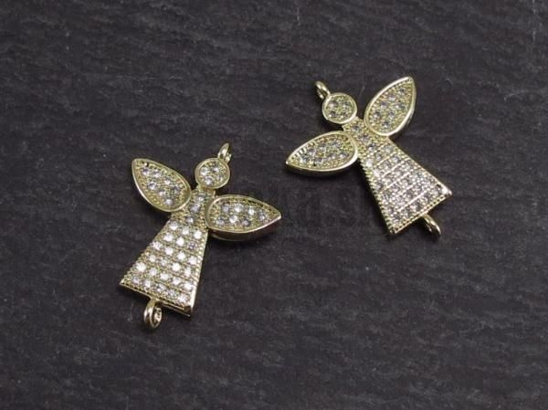 Náramkový medzikus anjel zo zlatej zliatiny kovov s bielymi kubickými zirkónmi vo veľkosti 15x19 mm.