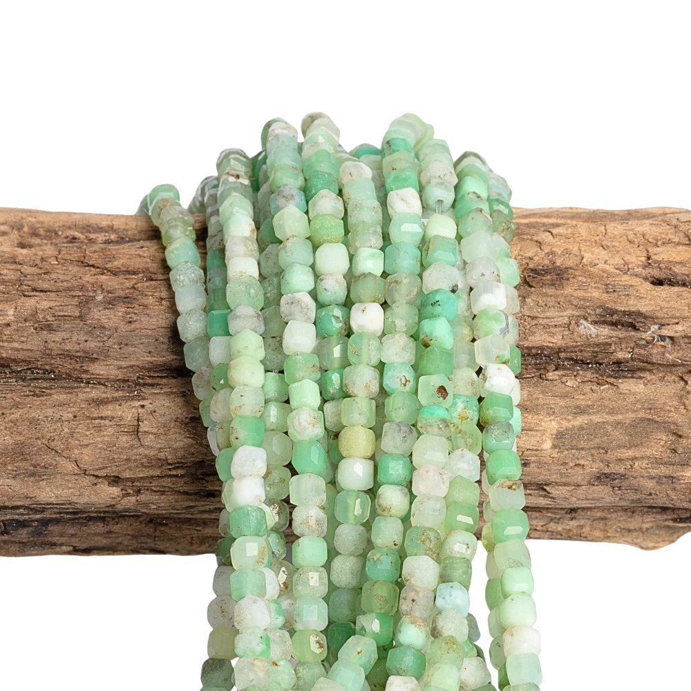 Chryzopras korálky 3,5mm kocky brúsené polšnúra