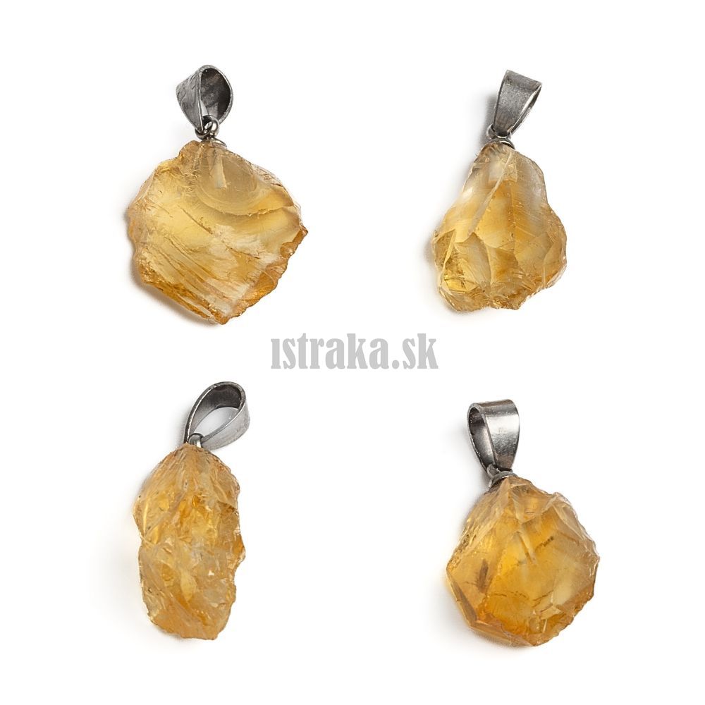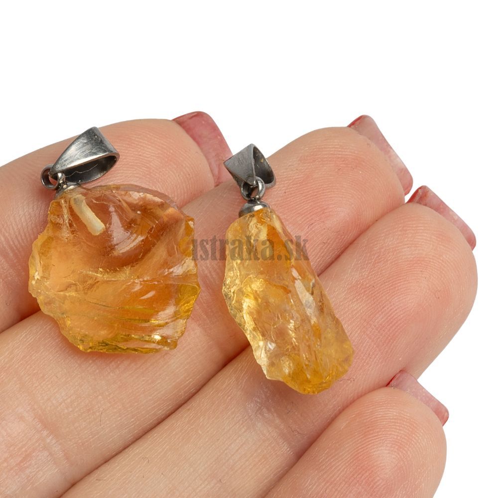 • Citrín surový prívesok väčší so starostriebornou šľupňou z nerezovej ocele