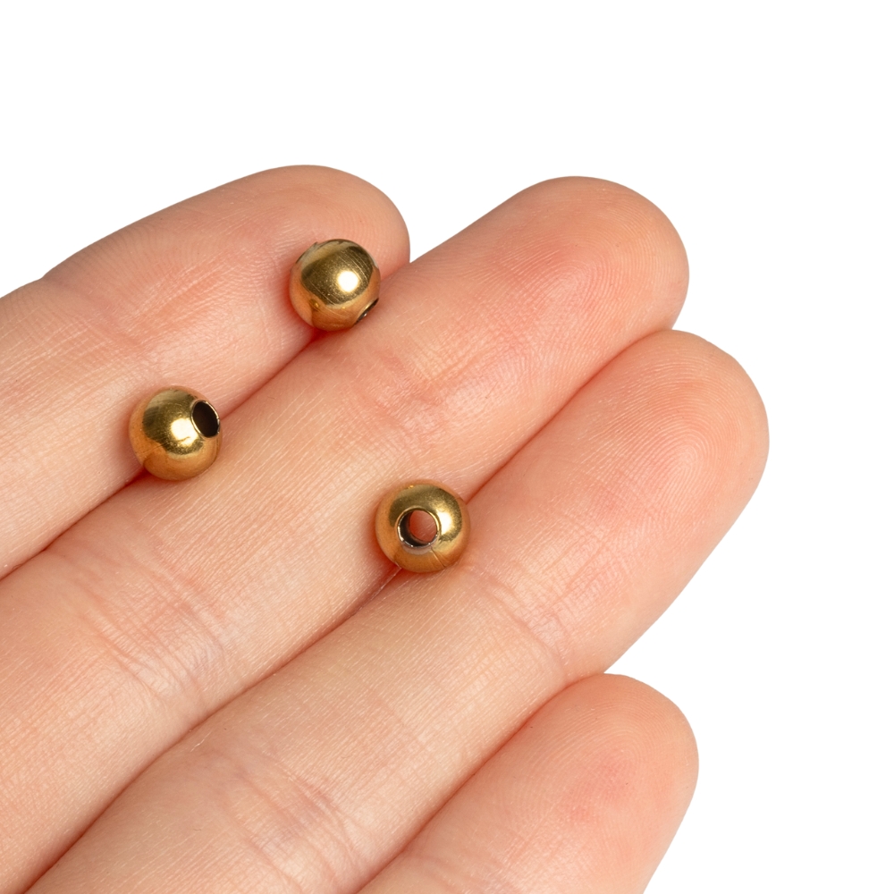 Nerezové ozdobné guľôčky v svetlej zlatej farbe na doplnenie vašich náušničiek a náramkov. V balení je 10 korálok.