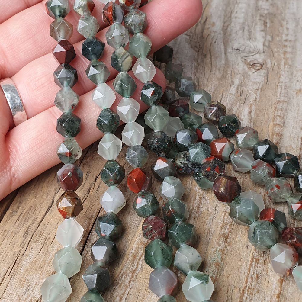Heliotrop korálky 8mm bicone výbrus šnúra
