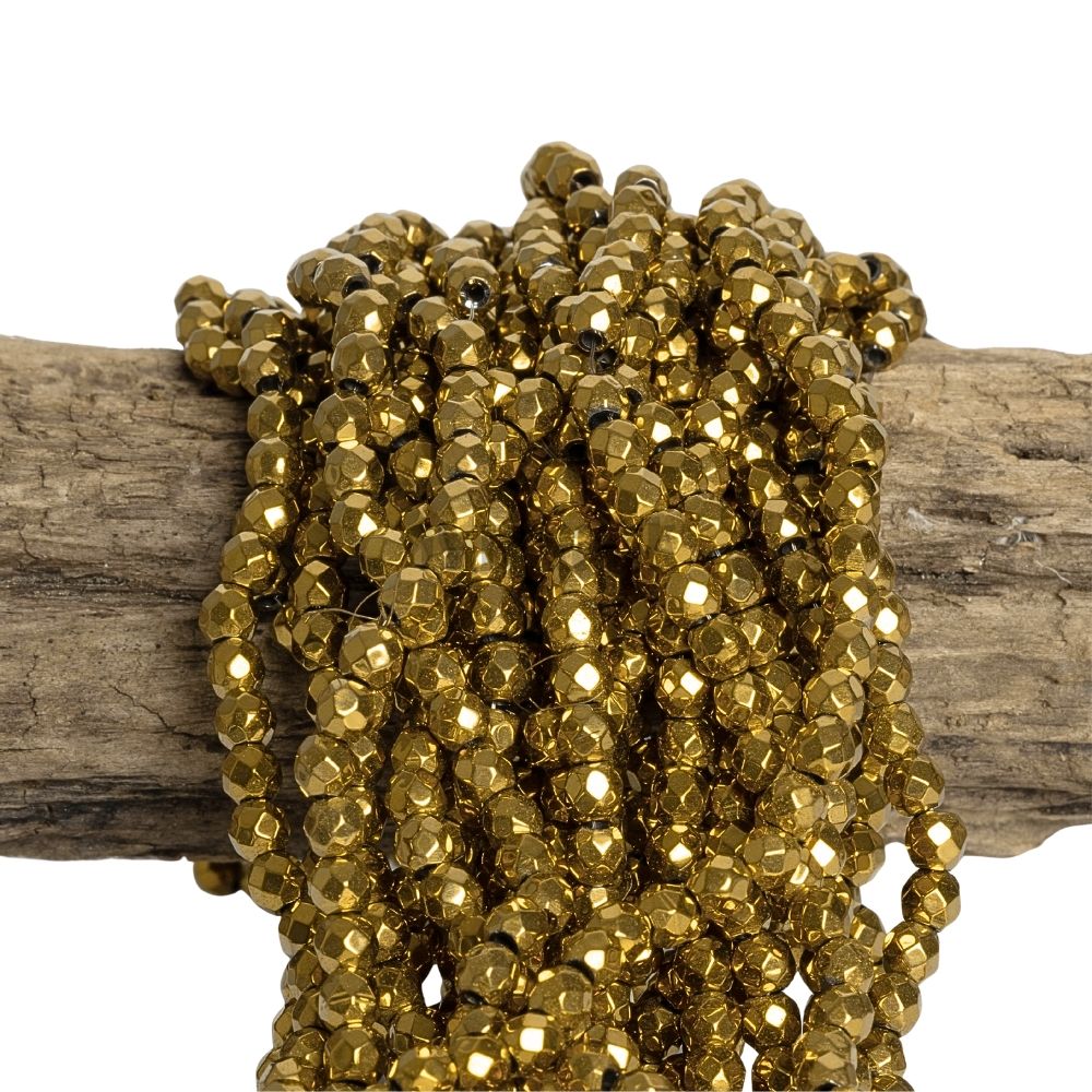 - Hematit korálky 4mm zlaté brúsené šnúra