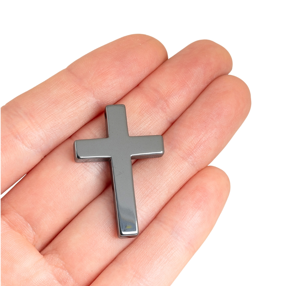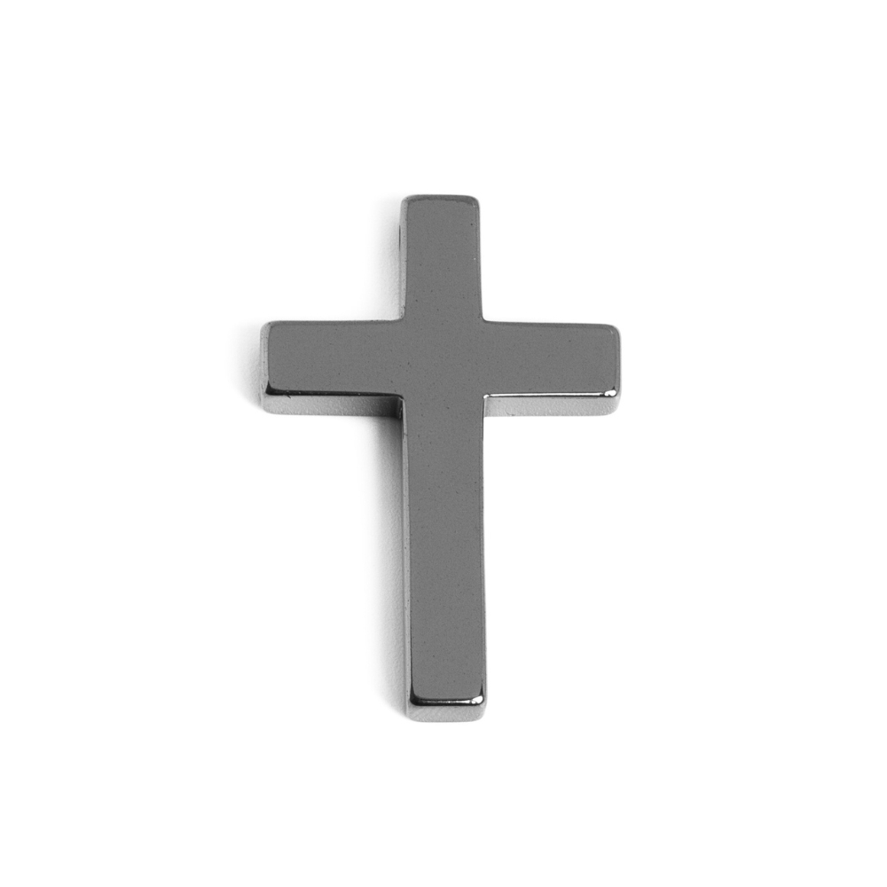 Krásny hematitový krížik, výborný na náhrdelníky a ružence. Dierka je v hornej časti krížika a je trochu atypická, prezrite si obidve fotky :) Navliekajte na tenučké nylonové šnúrky, alebo na poplastované lanko.