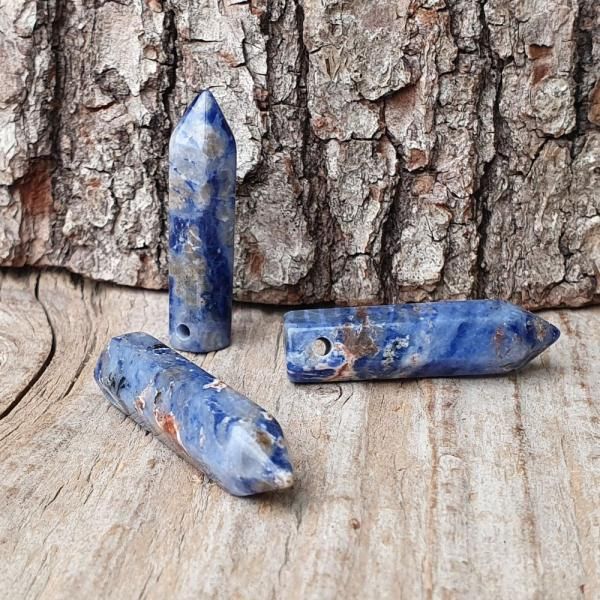 Šesťhranný prívesok - hexagon z prírodného minerálu sodalit s bočnou dierkou.