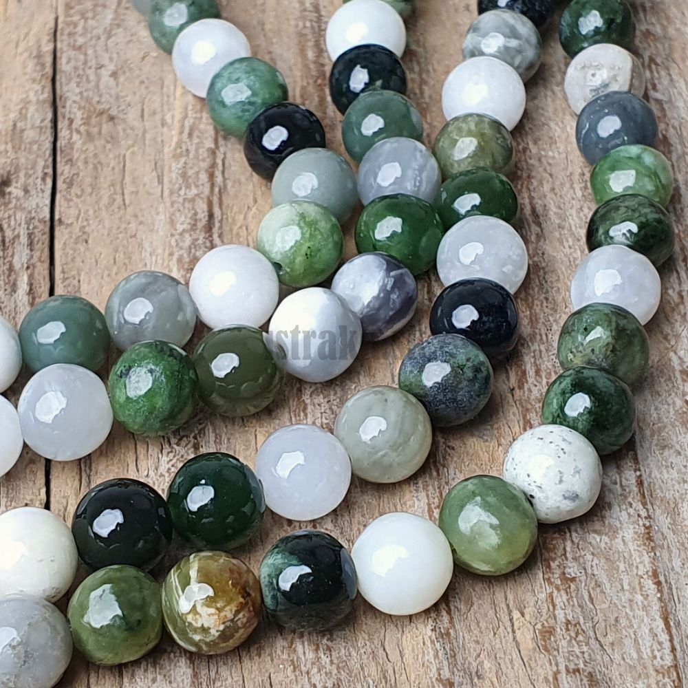 - Jadeit Kanada bielo-zelený korálky 8mm polšnúra
