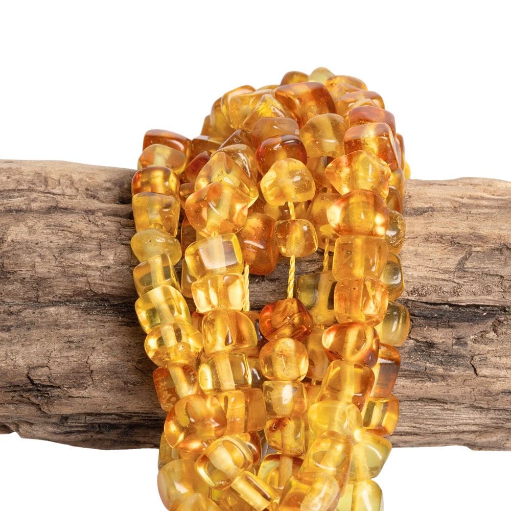 • Jantár žlto-oranžový  priehľadný korálky 5-6 mm nepravidelné kocky šnúra