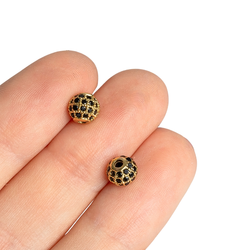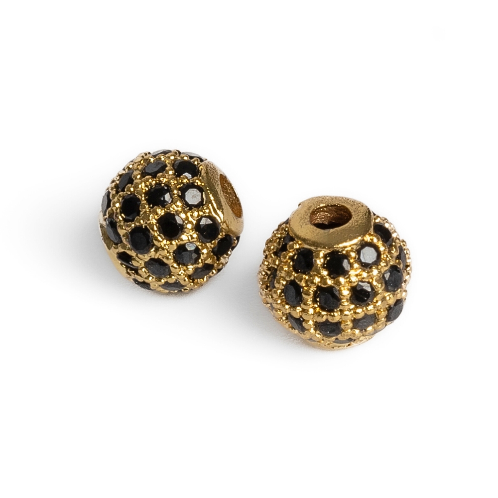 Drobné kovové guľôčky so vsadenými kubickými zirkónmi. Guľôčky sú veľmi pekné a kryštáliky pekne precízne povsádzané. Stačí použiť jednu guľôčku a váš náramok sa hneď krásne rozžiari :)
