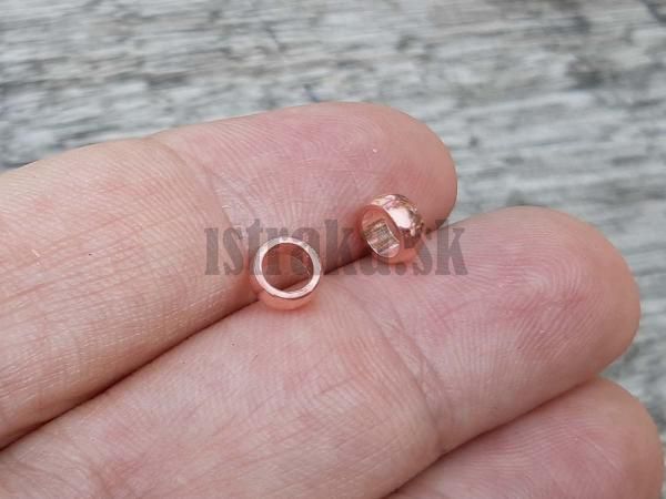 Korálka rondelka zo striebra Ag925 o veľkosti 5,5x2 mm, pozlátená ružovým zlatom a s lesklým povrchom.