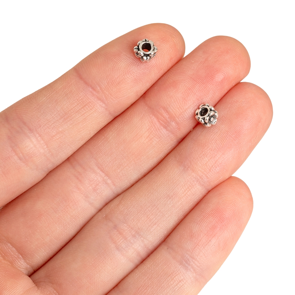 • Korálka rondelka Ag925 starostrieborná s kvetinkami