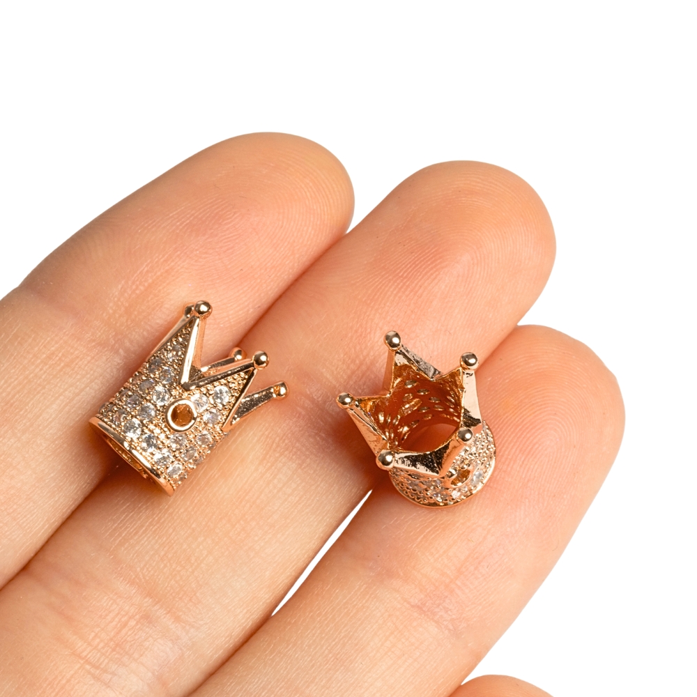Podlhovastá kovová korunka vykladaná kubickými zirkónmi. Korunky sú veľmi pekné a kryštáliky pekne precízne povsádzané. Stačí mať jednu takúto ozdobnú korunku a váš náramok sa hneď krásne rozžiari :) Najkrajšie zapasujú korunky k 8mm a 10mm korálkam. Dierky sú cca 1,1mm veľké.