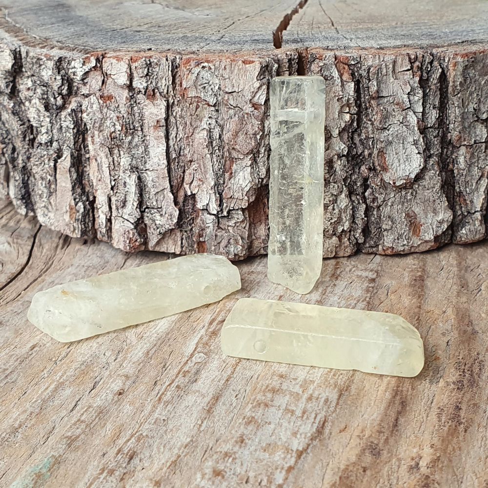 Hranatý prívesok z prírodného minerálu kremeň citrónový v tvare nepravidelného kvádru s lesklým hladkým povrchom.