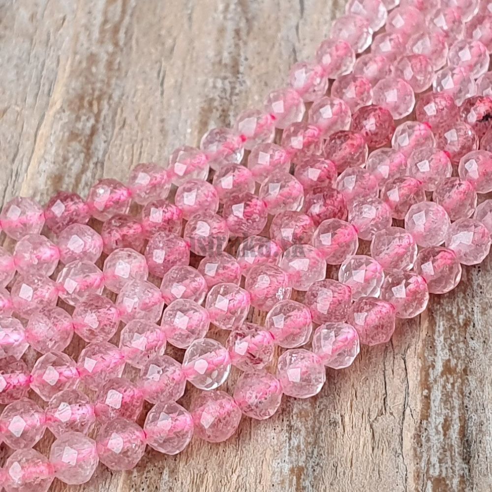 - Kremeň jahodový korálky 3mm brúsené šnúra