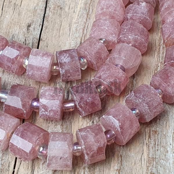 Korálky maxinugety z prírodného minerálu jahodový kremeň vo veľkosti ±8x12 mm s lesklým povrchom.