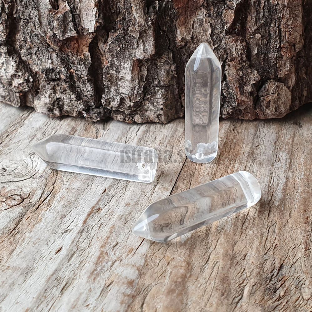 Šesťhranný prívesok - hexagon z prírodného minerálu krištáľ s bočnou dierkou.