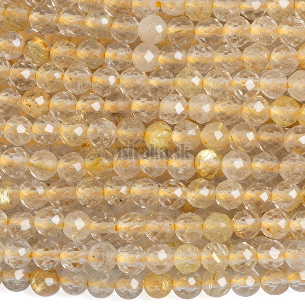 Krištáľ so zlatým rutilom korálky 2,5mm brúsené šnúra
