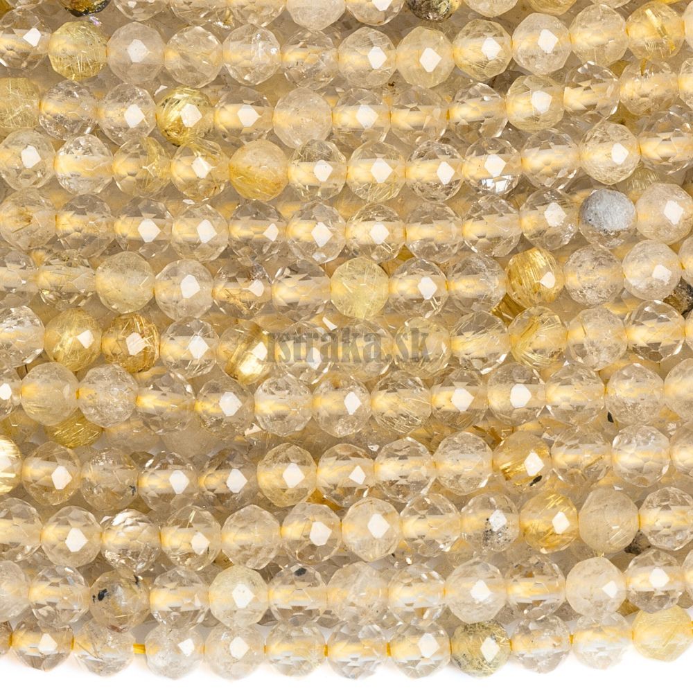 Krištáľ so zlatým rutilom korálky 3mm brúsené šnúra