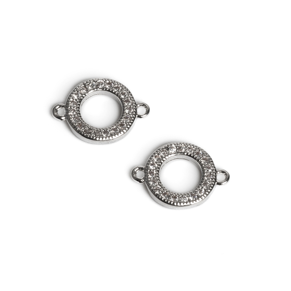 Náramkový medzikus kruh zo striebornej zliatiny kovov a bielymi kubickými zirkónmi o veľkosti 9 mm.