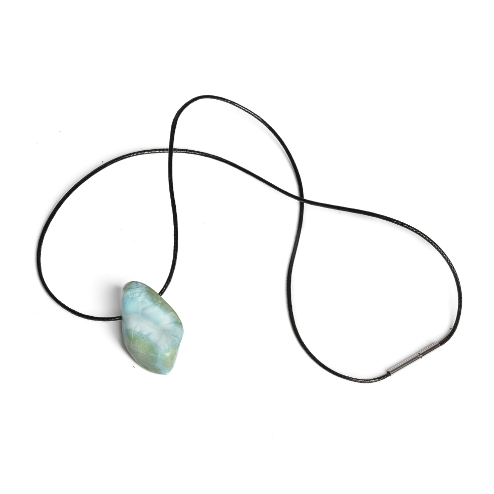 Náramok z prírodného minerálu larimar s lesklým povrchom. Nepravidelné oblé rondelky sú navlečené na elastickej šnúrke a vnútorný obvod náramku je väčší, než obvod ostatných našich náramkov - rozmery 16,5 až 17,5 cm. Preto je vhodnejší skôr pre pánov, no rovnako krásne sa bude vynímať na zápästí žienky, ktorá má rada, keď sú náramky na ruke v pohybe. :)
