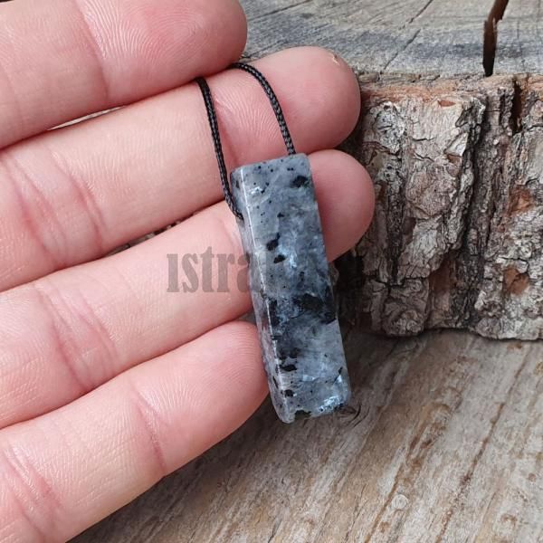 Šesťhranný prívesok - hexagon z prírodného minerálu larvikit s bočnou dierkou.
