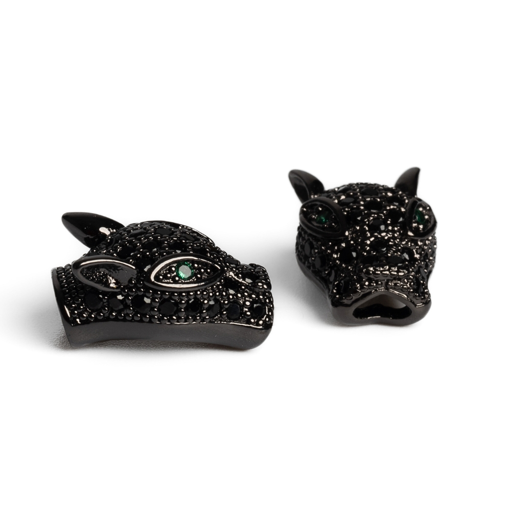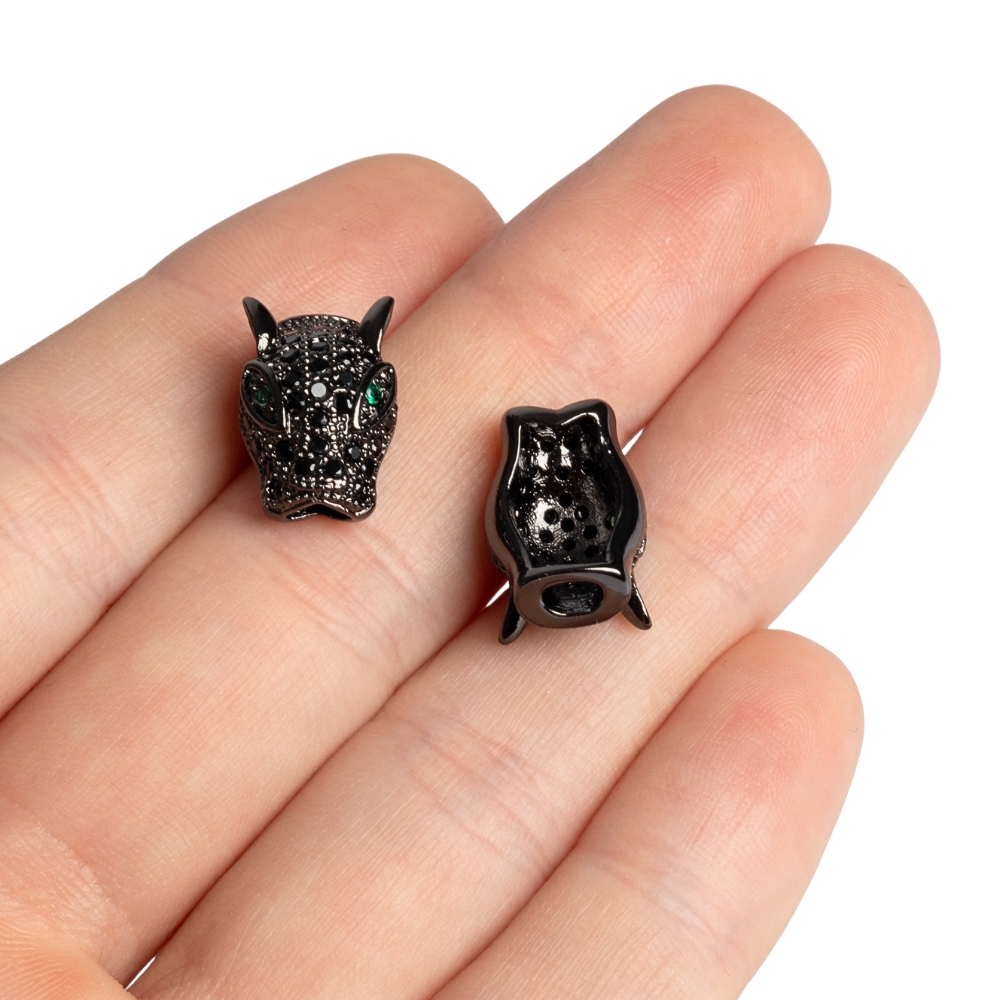 Ozdobná korálka z kvalitného kovu s precízne povkladanými kubickými zirkónmi. Tento kúsok vyzerá famózne spolu s hematitom (napr .6mm a 8mm). A najmä na pánskych rukách :) Leopardie oči sú zelené ;)