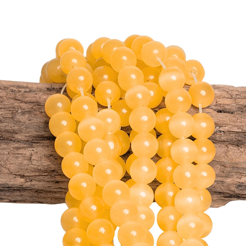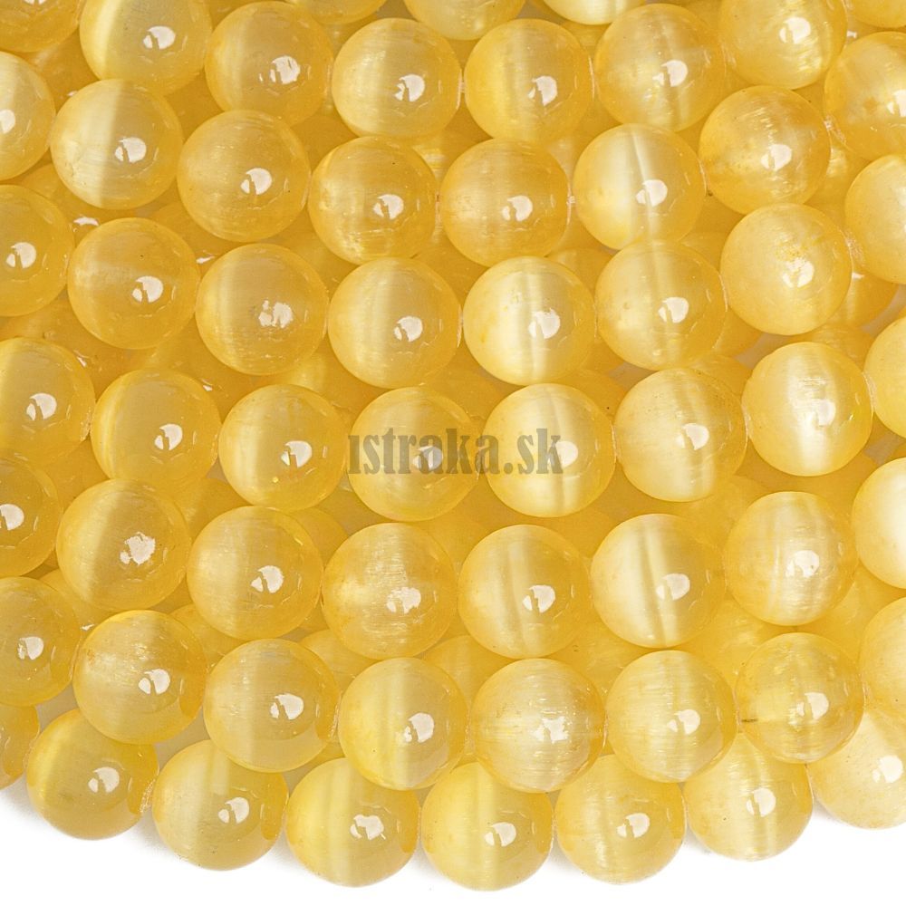 - Mačacie oči korálky 8mm svetložlté šnúra