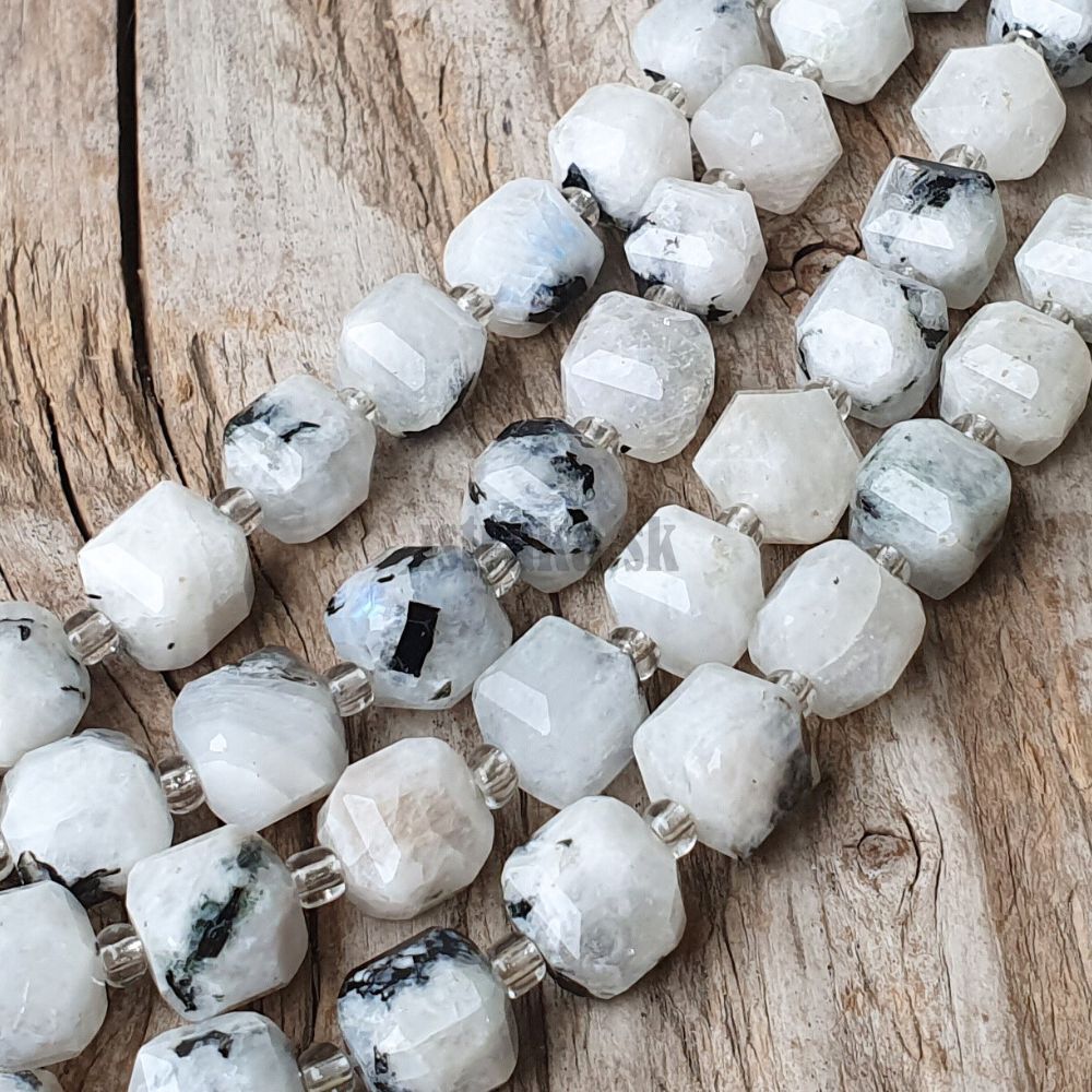 - Mesačný kameň čiernobiely korálky 8mm kocky brúsené polšnúra