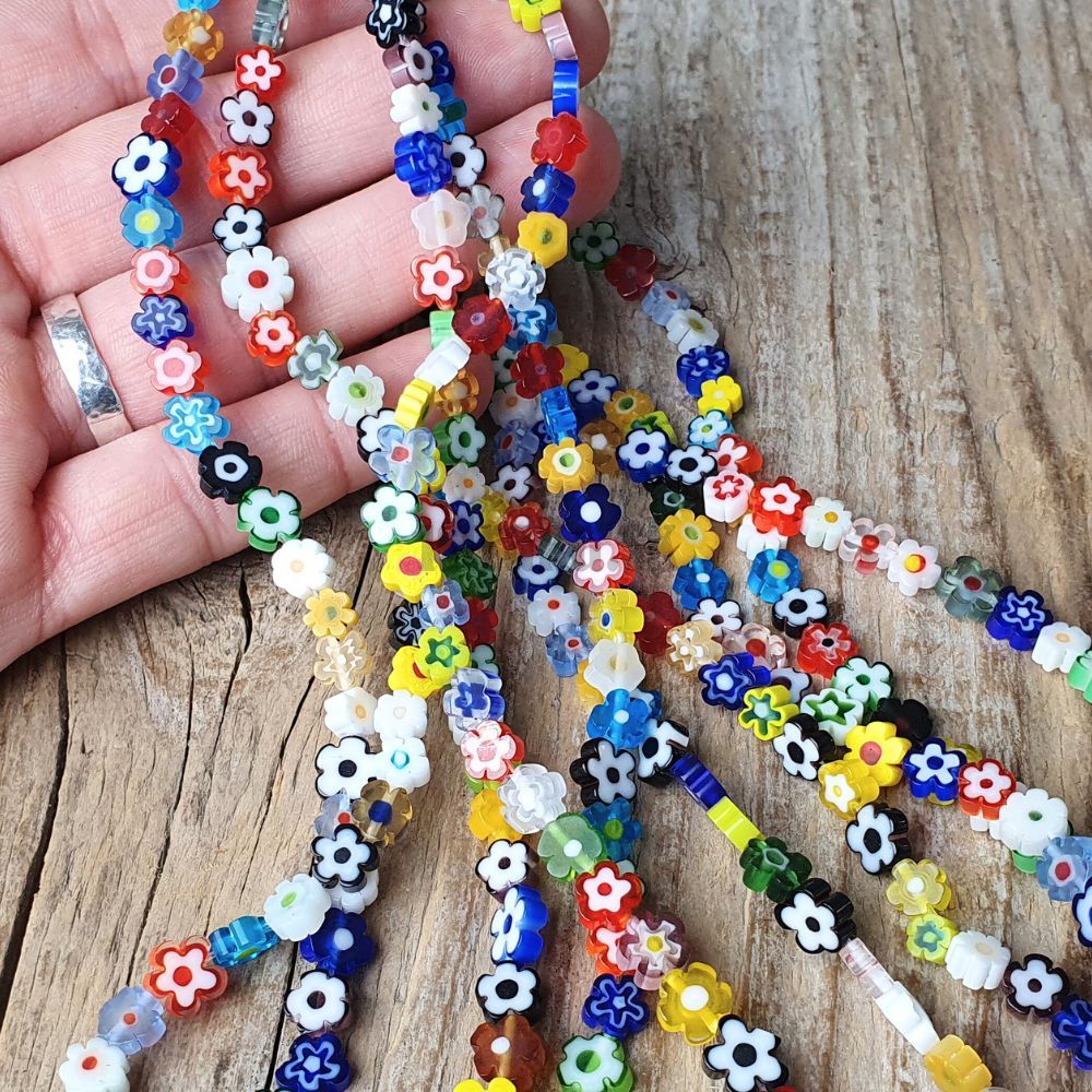 Millefiori korálky 6mm kvetinka šnúra