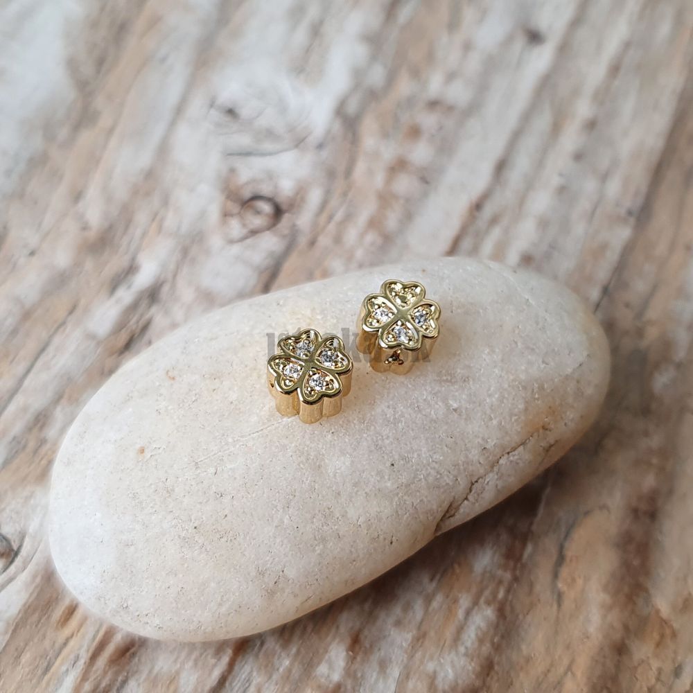 • Miništvorlístok korálka zlatá s bielymi zirkónmi