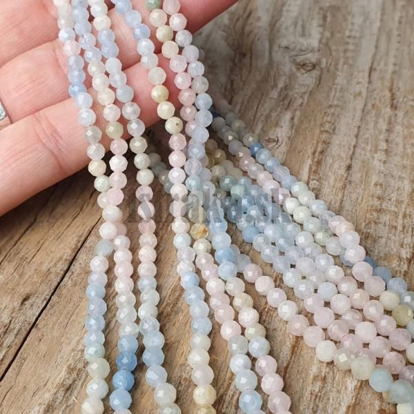 Morganit viacfarebný mix korálky 4mm brúsené šnúra