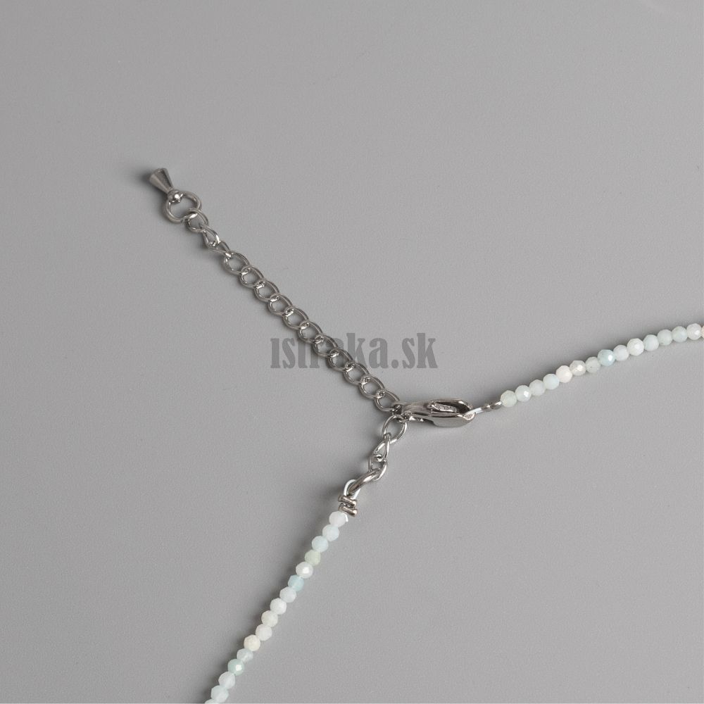 Jemný elegantný náhrdelník z minerálu mesačný kameň biely. Náhrdelník je tvorený brúsenými malinkými korálkami a je ukončený karabinkou a predlžovacou retiazkou dlhou cca 6 cm, takže si môžete regulovať jeho dĺžku.