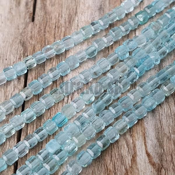 Drobné apatitové korálky v tvare kociek s nádherným svetlotyrkysovým odtieňom.