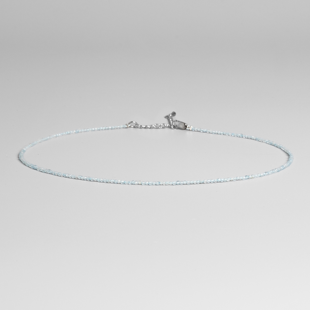 Jemný elegantný náhrdelník zo svetlého apatitu. Náhrdelník je tvorený brúsenými malinkými korálkami a je ukončený karabinkou a predlžovacou retiazkou dlhou cca 7 cm, takže si môžete regulovať jeho dĺžku.