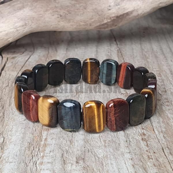 Čakrový náramok z prírodných drahých kameňov s veľkosťou korálok cca 6mm. V náramku nájdete tieto kamene - tehlový a modrobiely jaspis, lapis lazuli, tigrie oko, zelený avanturín, žltý jadeit a ametyst. Náramky sú elastické, majú jednotnú veľkosť a pre pohodlné nosenie sú vhodné na zápästie s obvodom maximálne 19,5 cm.