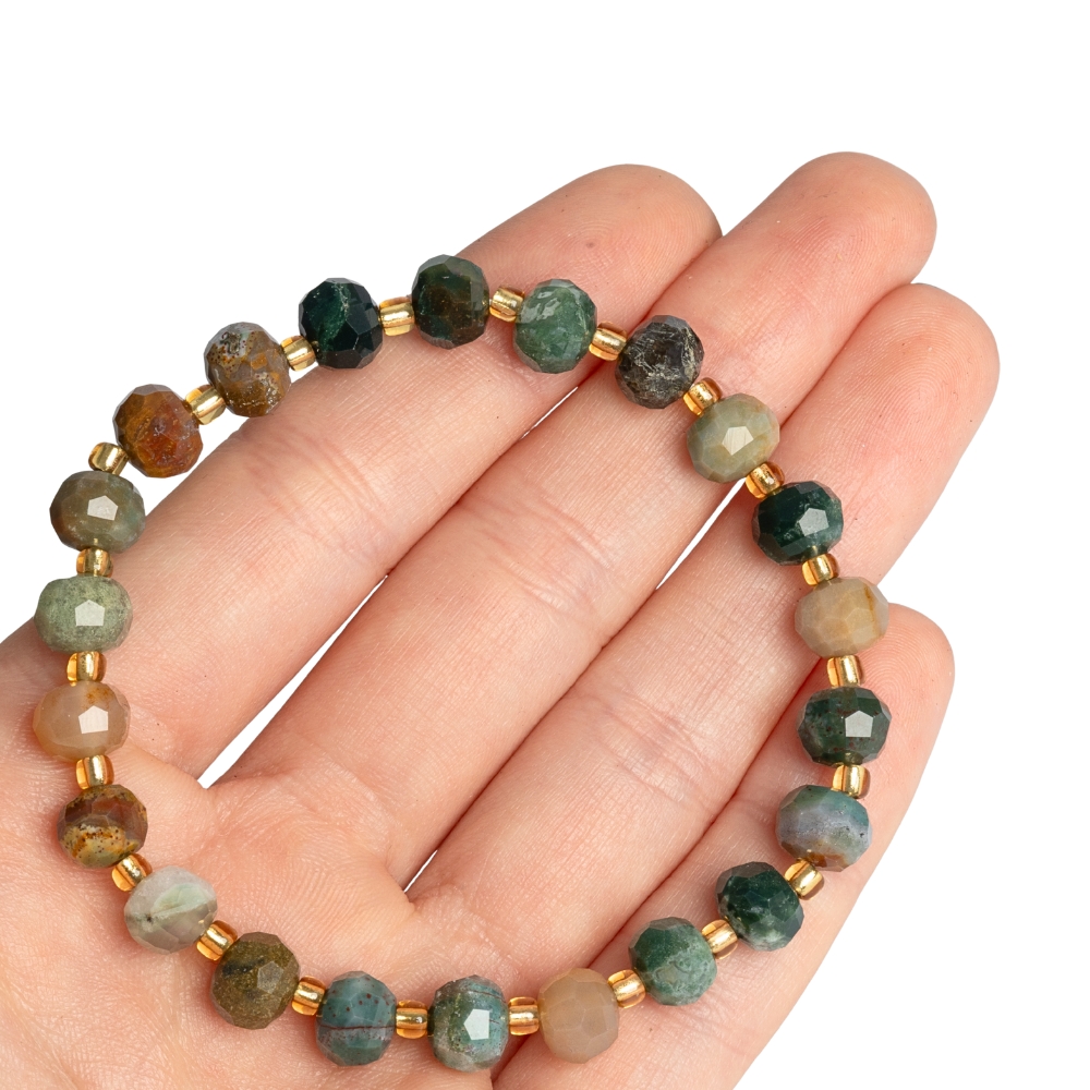 - Náramok achát indický 6x8mm brúsené rondelky s rokajlom
