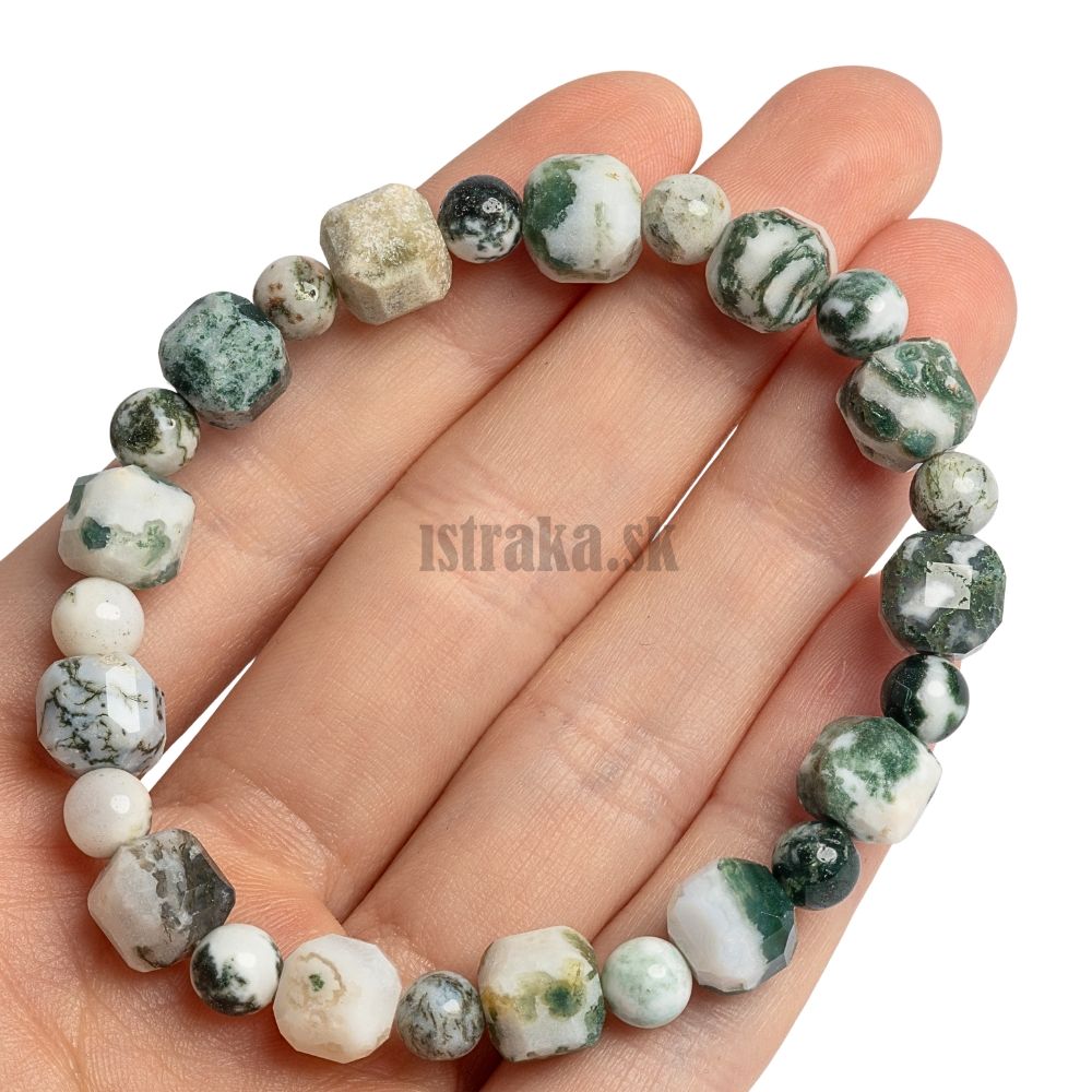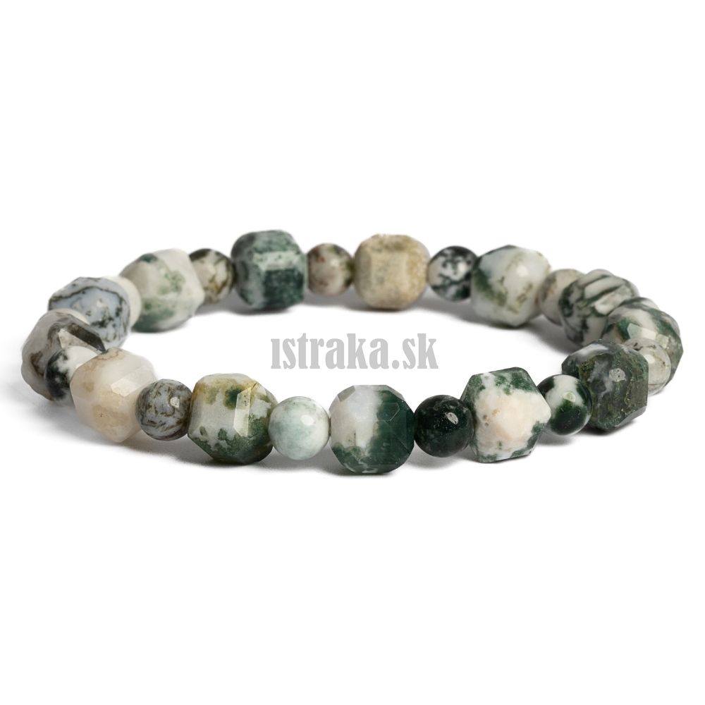 - Náramok achát stromčekový 8mm kocky + guľôčky