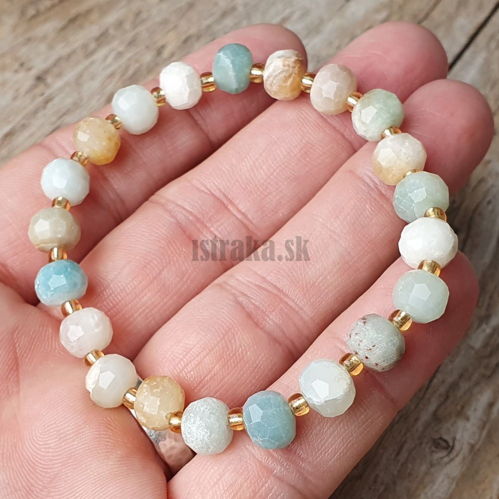 - Náramok amazonit 6x8mm brúsené rondelky s rokajlom