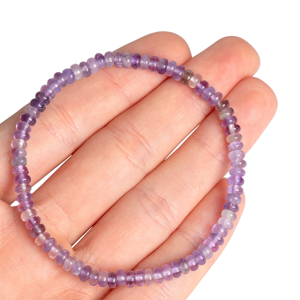 Elastický náramok tvorený lesklými brúsenými rondelkami z prírodného minerálu ametyst.