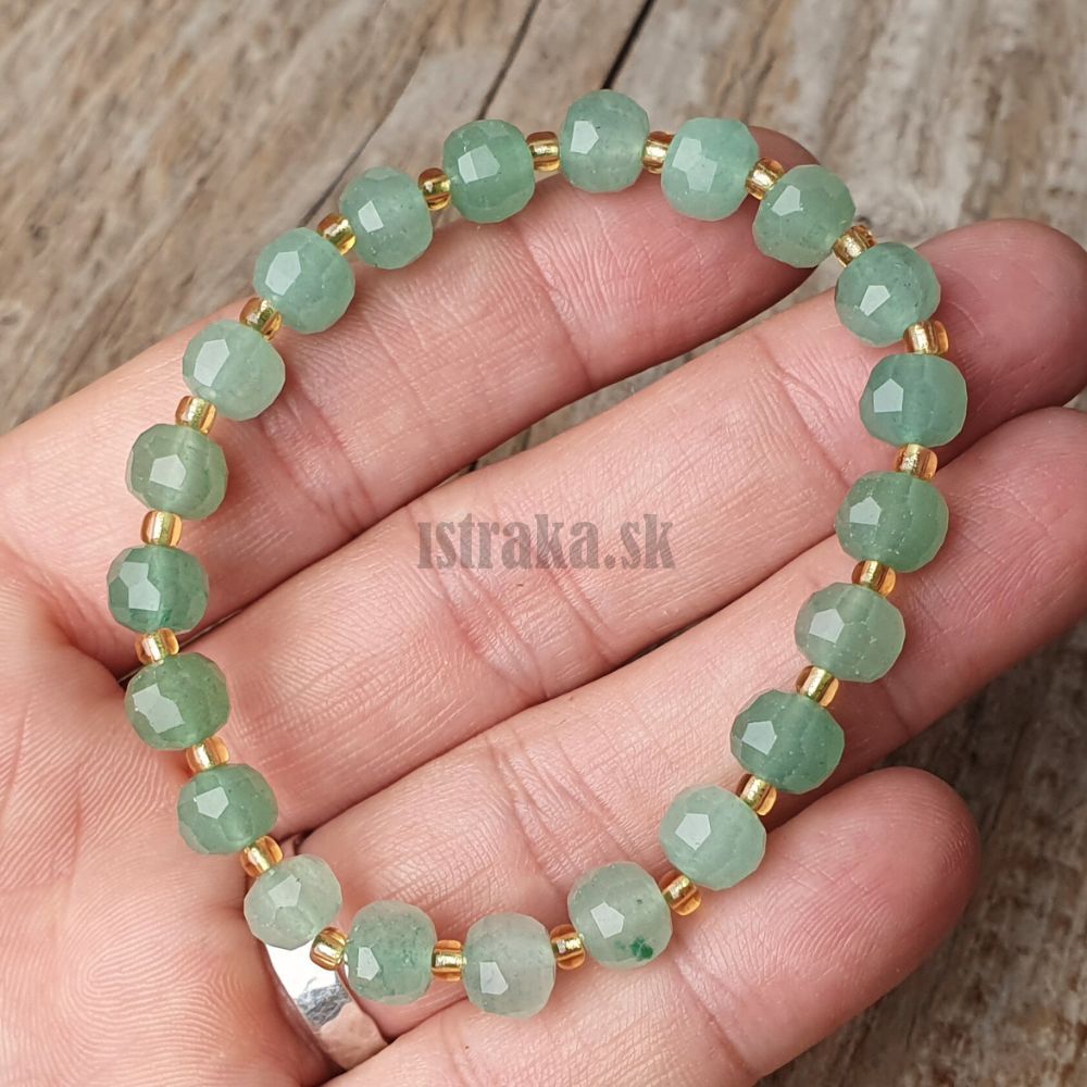 - Náramok avanturín zelený 6x8mm brúsené rondelky s rokajlom