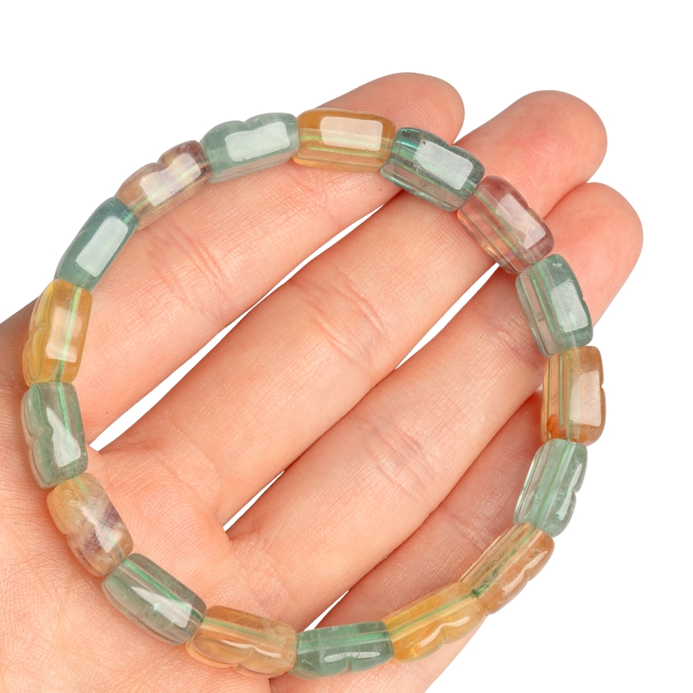 Nádherný originálny náramok z rôzne sfarbených štvorcov fluóritu doplní krásne váš outfit.