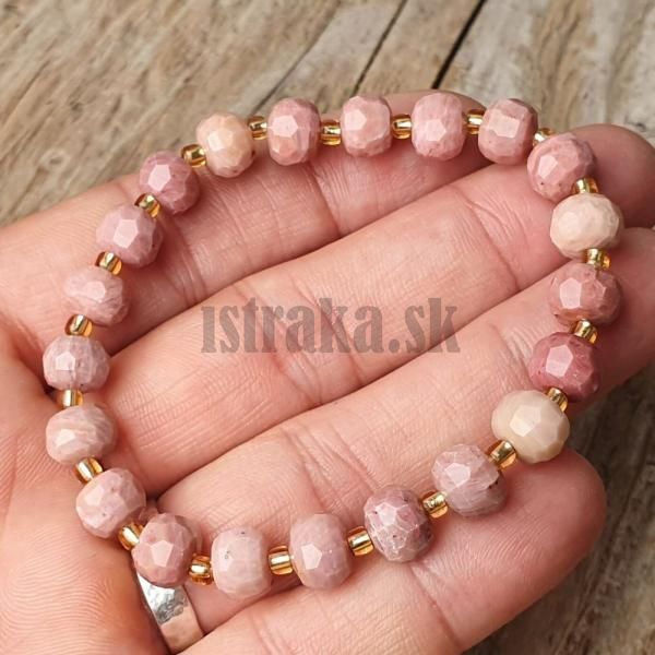 - Náramok rodonit ružový 6x8mm brúsené rondelky s rokajlom