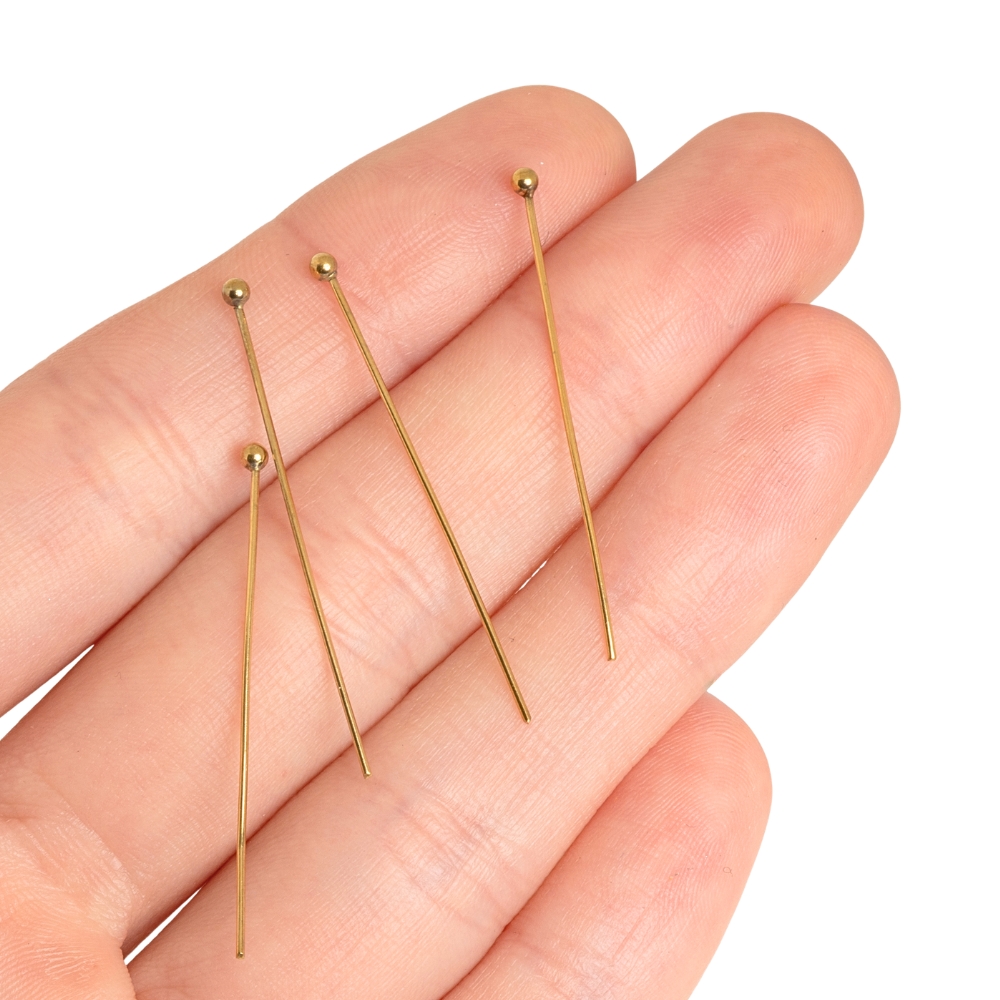 Bižutérne nýty z nerezovej ocele dlhé 35 mm s pokovom zlatej farby.